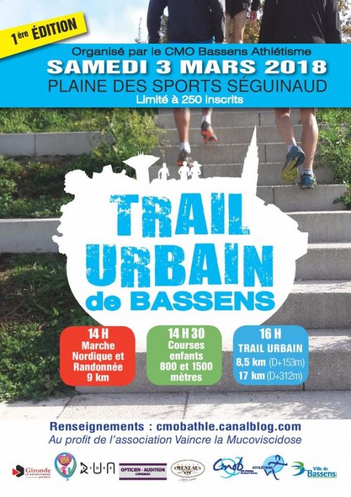 Nouvelle formule: Trail Urbain, mi chemins mi routes sur 2 boucles (7 km et 14 km) avec faux plat descente et une jolie cote dans le centre ville de Bassens. Départ de la plaine des sports de Séguinaud a proximité du tram douche vestiaire sur place très grand parkingCatégories autorisées ES->V5.