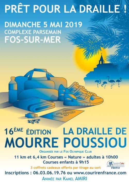La Draille de Mourre Poussiou, course pédestre organisée par le Fos Olympique Club, Course nature, Trail, Challenge Golfe de Fos, Super Challenge FSGT. Parcours en colline sur chemins vallonnés et dans les salins. Accessibles à tous (sauf Handisports).