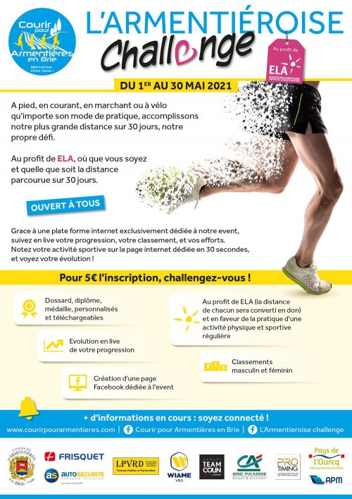 A pied, en courant, en marchant ou à vélo qu’importe son mode de pratique, accomplissons notre plus grande distance sur 30 jours, notre propre défi. au profit de ELA, où que vous soyez et quelle que soit la distance parcourue sur 30 jours. Ouvert à tous
