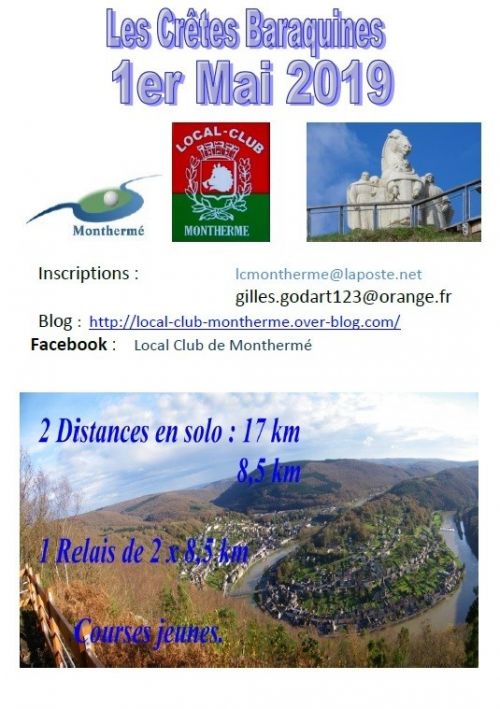 Le tracé est identique au parcours des Crêtes Baraquines. Le départ est commun, le relais et le ravitaillement se trouvent au Cosec de Monthermé. Un brin de muguet sera offert à toutes les féminines passant la ligne d'arrivée. Catégories autorisées CA->V4.