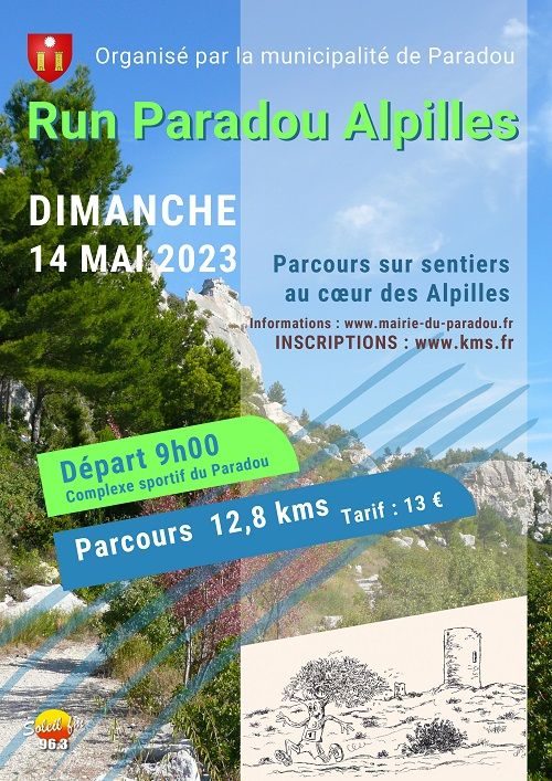 La course Run'Alpilles organisée par la municipalité du Paradou. Cette 5 ème édition se déroule, comme les précédentes, sur des sentiers au coeur des Alpilles. 12,8 kms et 250m de dénivelé. Le départ est prévu à 9 h du complexe sportif.