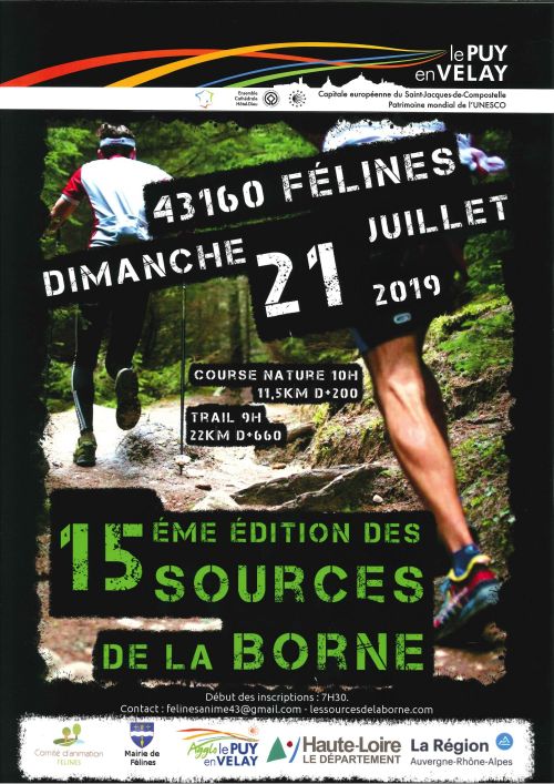 17ème édition des Sources de la Borne. Au programme : 3 courses et 2 randonnées qui vous feront découvrir les magnifiques paysages environnants dans une ambiance chaleureuse. En marge des courses, des animations égayeront la journée des plus petits comme des grands.