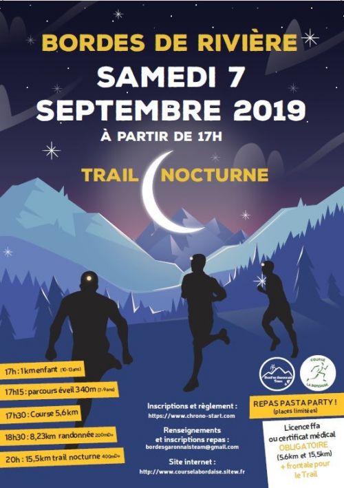 L' association Bord'es Garonnais Team, pour cette journée, organise cinq épreuves: une course de 1km, une course de 5.6km, une randonnée de 5.6km, , un trail de 10km et un trail de 18km.