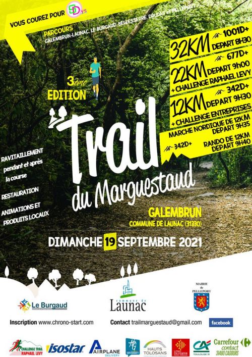 Le Marguestaud, c’est une petite rivière qui coule paisiblement du côté du petit village de Galembrun, commune de Launac. C’est aussi le nom du bar de la place des Acacias au centre du village où nous vous accueillerons avec grand plaisir. Cette place est le lieu du départ et de l’arrivée des différentes formules : trail, randonnée pédestre et marche nordique. C’est également là que nous vous proposerons de passer un moment convivial après la course pour vous restaurer ou simplement refaire la course entre amis autour d’un verre.