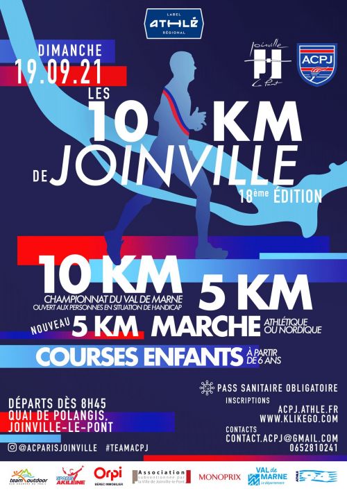 17ème édition des 10 km de Joinville, organisée par la Ville de Joinville-le-Pont et l'AC Paris Joinville sur un circuit en boucle, sur les bords de Marne et guinguettes.