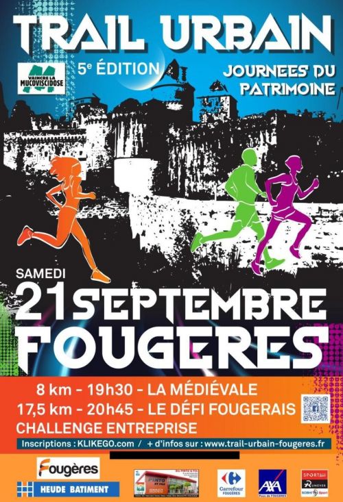 Trail Urbain de Fougères organisé en association indépendante avec comme ambition de faire découvrir la ville de Fougères riche de son histoire, belle et surprenante. Son relief, ses lieux uniques et insolites font un terrain de jeu idéal pour un très beau Trail. Une course pour les coureurs où la découverte s’allie au plaisir de relever un défi sportif et de partager un bon moment ensemble.