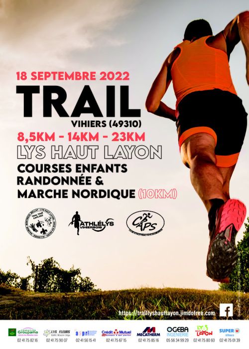 Trail court de 22km et 2 courses nature de 13km et 8km. RDV à l'étang du Lys de Vihiers pour la marche nordique et randonnée (10km) et les 3 courses du trail du Lys Haut Layon (8, 13 et 22km).