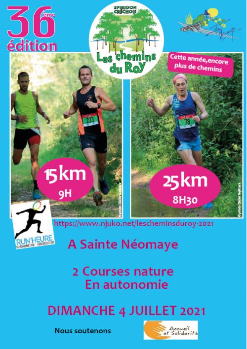 36ème édition de la course nature Les Chemins du Roy, la plus vieille course nature du département. 2 courses et une randonnée gourmande.