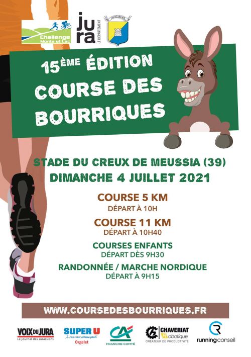 Le Foyer Rural de MEUSSIA sera heureux de vous accueillir sur la course des bourriques. Cette 14ème édition se déroulera au stade du Creux de COYRON. Au programme, randonnée, courses baby et enfants, populaires, et la traditionnelle Bourriques sur 11 km, avec vue sur la retenue du barrage de Vouglans.