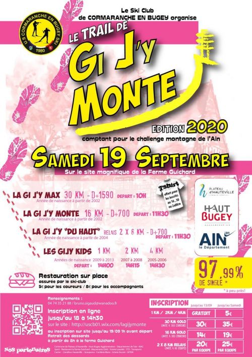 Le Ski Club de Cormaranche en Bugey organise la 9ème édition du trail La Gi J'y monte sur le magnifique site de la Ferme Guichard. Peut se courir en relais de 2 coureurs ou en solo.