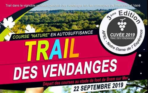 Le Trail des vendages de Brem sur mer est organisé par les membres de l'APEL et L'OGEC de l'école privé notre de Dame de l'Espérance de Brem sur mer. Course pédestre nature, à majorité sur sentier et chemin dans les vignes.