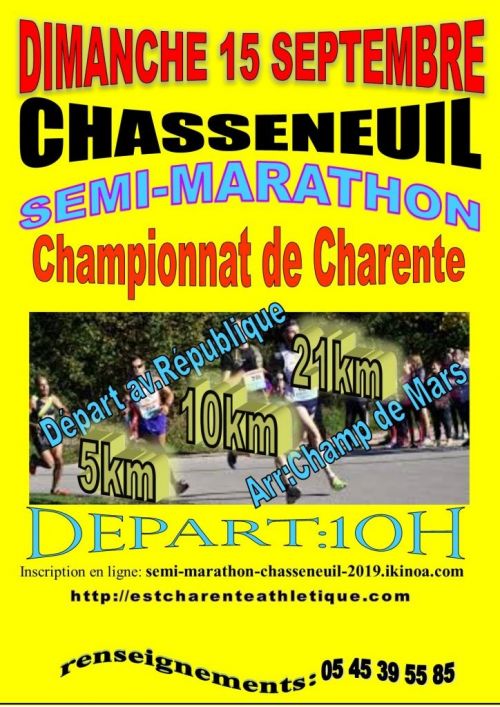 34ème semi-marathon de CHASSENEUIL SUR BONNIEURE organisé par le club d'athlétisme EST CHARENTE ATHLETIQUE.