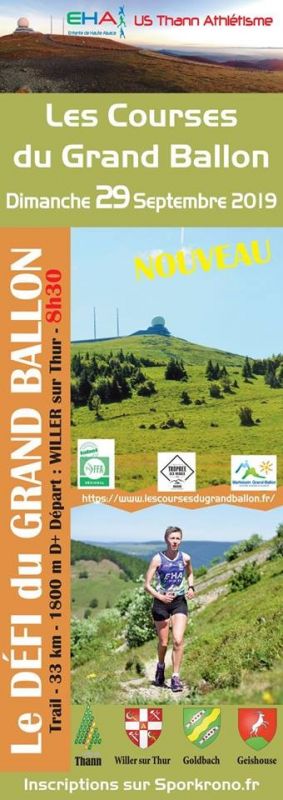 L’USTA innove cette année en organisant parallèlement à l’historique montée sèche du Grand Ballon un trail de 33km passant par le toit des Vosges. Au départ de Willer sur Thur, vous quittez rapidement la route pour prendre des chemins forestiers et des sentiers tortueux. Au sommet de la première difficulté, à la sortie de la forêt, vous découvrez le majestueux Grand Ballon et la deuxième grimpée qui vous attend. Reprenez votre souffle dans la descente qui vous mène à Goldbach.