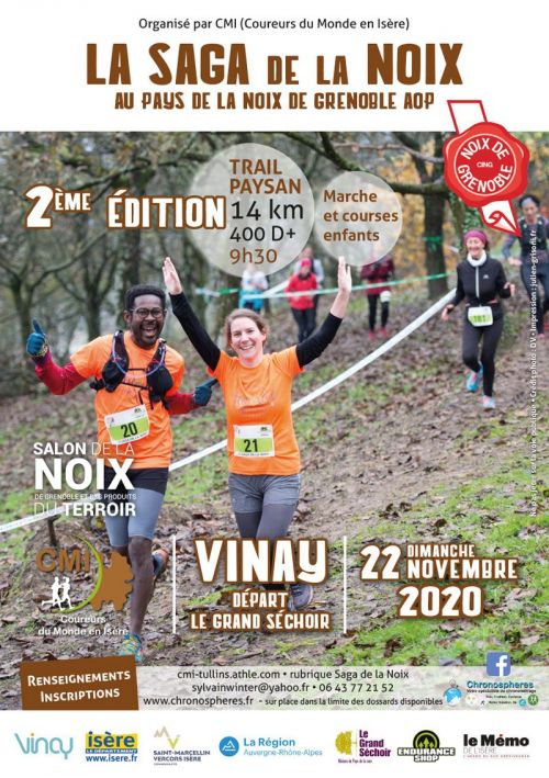 Trail paysan au pays de la Noix de Grenoble AOP dans un paysage de collines et de vergers, avec pour point culminant le belvédère de la Madone, haut lieu historique. La base de départ sera la Maison de la Noix (Grand Séchoir) dans le cadre des fêtes de la Noix et des produits du Terroir.