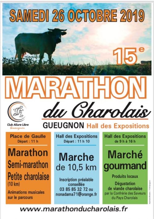 16ème édition du Marathon du Charolais, l'ainé des Marathons en Bourgogne Franche-Comté. Organisé par le CALG, une association Loi de 1901 qui s'est donné pour but la promotion et le développement de la course à pied à allure libre, dans la région Gueugnonnaise.
