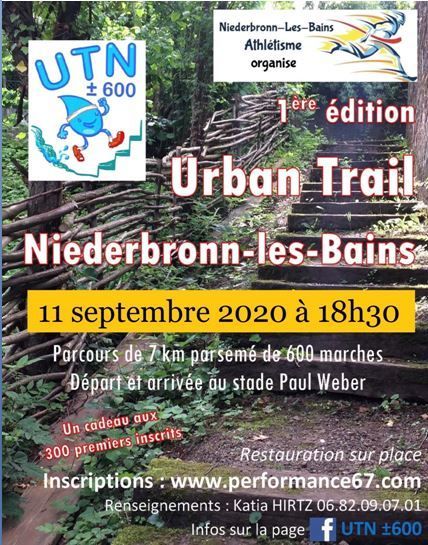 Urban Trail de Niederbronn-les-Bains avec un parcours de 7km, empruntant les 2 versants de la ville, avec pas moins de 596 marches au total.