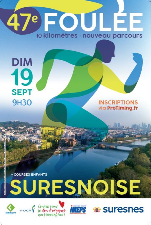 47ème édition des Foulée Suresnoise au Mont Valérien sur un parcours de 2 boucles dans un cadre verdoyant et sélectif autour du Mont Valérien. Au programme une course de 5 km (1 boucle) une course de 10 km (2 boucles) et de 1 km (course enfants) suivies de la traditionnelle course des greffés.