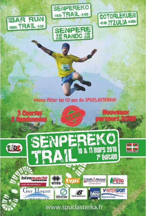 7ème édition du Senpereko Trail. Ce Trail se déroulera sur une distance de 21.500km et un dénivelé positif de 1050m. Le départ aura lieu sur le fronton du quartier Ibarron de Saint-Pée sur Nivelle.