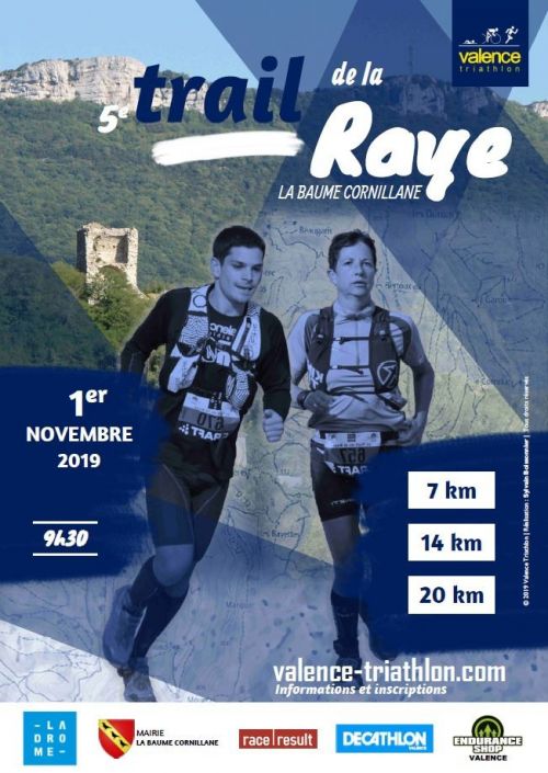 Le Valence Triathlon organise la 5ème édition du Trail de la Raye à La Baume Cornillane. Au programme, 3 parcours , 7, 14 et 20 kms. Epreuve limitée à 500 concurrents, au total, sur l'ensemble des 3 courses
