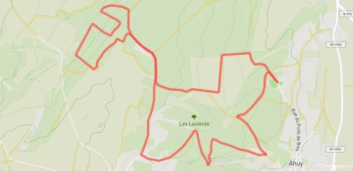 Parcours très agréable dans les bois et les combes sur le plateau d'Ahuy. Catégories autorisées CA->V5.