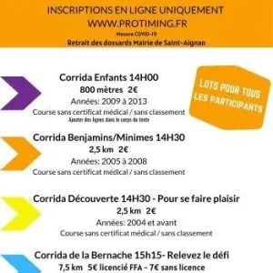 Corrida de la Bernache avec un parcours est accessible à tous et atypique dans les rues de Saint-Aignan avec un passage dans la cour du chateau. Ambiance assurée en passant au coeur de la Saint-Simon (fête foraine annuelle de la ville).
