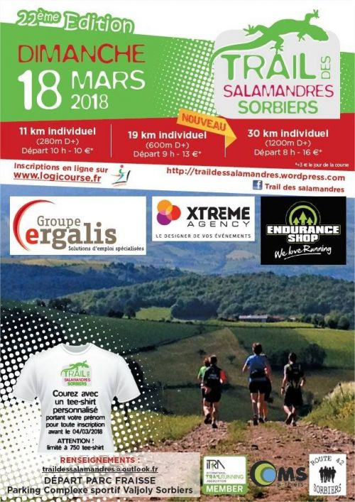 Le Trail des Salamandres est une épreuve qui se déroule sur les chemins des Monts du Lyonnais, au départ de Sorbiers, à quelques kilomètres de Saint-Etienne. Un vrai trail, technique, pentu, varié, surprenant… Plusieurs nouveautés au programme cette année : un nouveau parcours intermédiaire et le Trail des Salamandres est désormais membre de l’ITRA