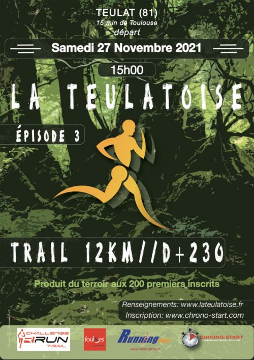 Petite course nature sans prétention, qui se déroulera sur la commune de Teulat à 15′ environ de Toulouse. Une course sera au programme. Un repas sera possible après l’effort et des produits du terroir, genre pâté ou terrine, seront offerts aux 300 premiers inscrits…