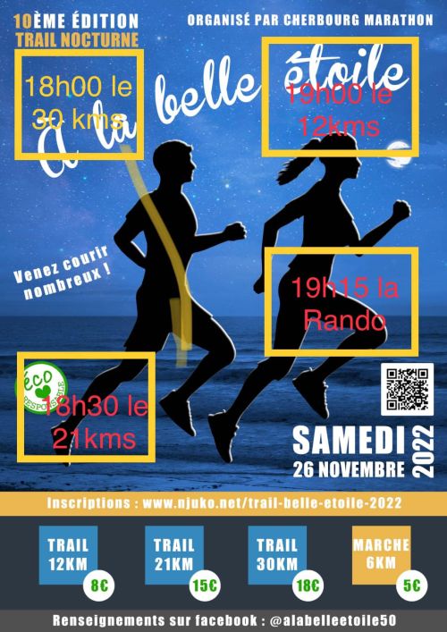 Trail à la Belle Etoile organisé par l'Amicale Cherbourg Marathon. Une randonnée pédestre de 8 km pour permettre aux familles accompagnatrices de participer à l'évènement.