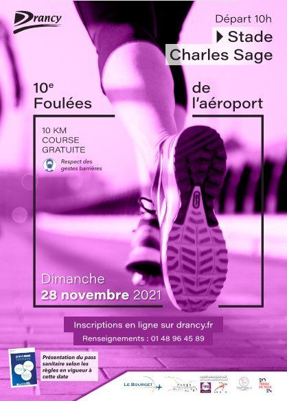 Les Foulées de l'aéroport organisée par les villes de Drancy et du Bourget en partenariat avec le club ABDO. Course hors stade de 10 kms labellisé FFA avec un parcours entièrement sécurisé. Ce rendez-vous sportif devenu incontournable propose un parcours de 10 km, sur Le Bourget et Drancy. Gratuite et ouverte à tous à partir de 16 ans, les Foulées de l’Aéroport accueillent chaque année des centaines de coureurs sans condition de niveau.