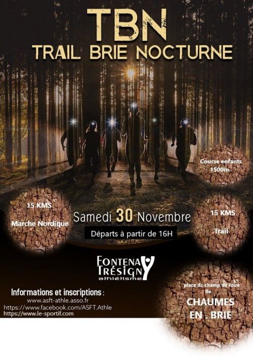 Fontenay-Trésigny Athlétisme organise le Trail Brie Nocturne, son premier événement nature à Chaumes-en-Brie, avec 3 courses au programme. Le tout sur un tracé à 95% non asphalté, ludique et exigeant, en 3 boucles différentes, permettant aux accompagnateurs de voir leurs coureurs favoris à plusieurs reprises.