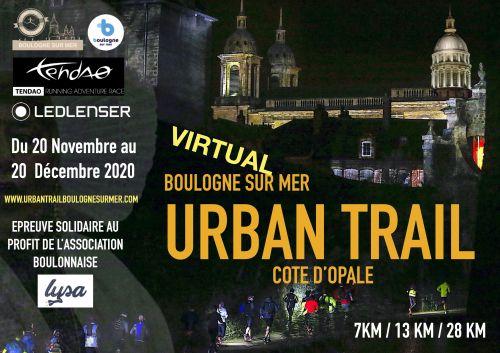 Edition virtuelle du Boulogne sur Mer Urban Trail Cote D'Opale qui avait accueilli en 2018 plus de 3000 urban trailers. Le concept de l'Urban Trail de Boulogne sur Mer est la découverte sportive du patrimoine touristique, historique et industriel de la ville de Boulogne sur Mer. Trois distances sont proposées pour les urban trailers : Un 7,5 km, un 13 km, et un 28 km qui fera aussi découvrir les patrimoines des villes voisines de Wimille et de Saint Martin Boulogne. Tout le long du tracé, illuminations et animations donneront à ce quatrième Urban Trail de Boulogne sur Mer un charme unique et festif !