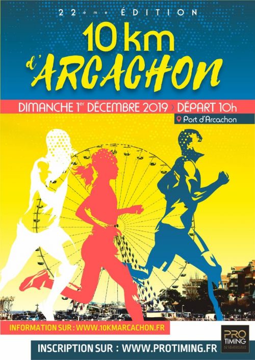 Course sur route de 10km officiellement mesurée.Parcours à 50% en front de mer. 3 côtes de faible pourcentage à 1/2 parcours. Départ en bout du quai Goslar, près de la capitainerie du port de plaisance d'Arcachon. Arrivée derrière la halle de l'Aiguillon.