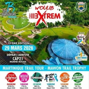3 ème manche du Trail Tour National (TTN), Course à Label National FFA. Départ de l’espace Samboura en direction de Anse Couleuvre jusqu’à Grand Rivière , ascension de la montagne Pelée par Beauséjour , Maison au Moine ,Morne Macouba . Descente de la montagne Pelée par Grande Savane puis chemin Martineaud . Arrivée à l’espace Samboura au bourg du Prêcheur .