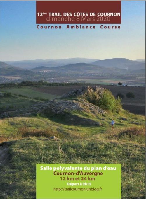 Eco-trail des côtes de Cournon d’Auvergne. Course de type trail se déroulant individuellement sur 2 parcours de 12Km et 24Km constitués de 90% de chemins et sentiers sur les coteaux secs des puy d’Anzel et puy de Bane.