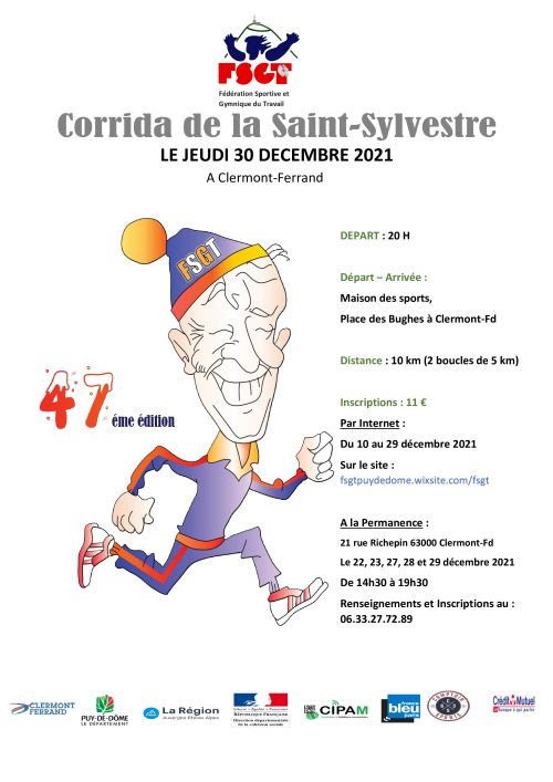 Course de la Saint Sylvestre. Le départ sera donné à 20h de la maison des sports. Le parcours sera plus long et fera 2 tours pour un total de 11km500. Le détail du parcours sera disponible ultérieurement.
