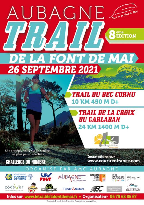 Au cœur du massif du Garlaban, , Le trail de la Font de Mai va offrir aux amateurs de collines provençales 2 courses pédestres de type trail Ces épreuves prennent leur départ à l’entrée du Parc de la Font de Mai à Aubagne et vont mener les participants sur des chemins traversant les communes de Roquevaire, Allauch et Aubagne, sur les sentiers chers à Marcel Pagnol. Un repas complet est prévu pour tous les participants à leur arrivée.