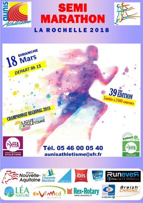 L’AUNIS ATHLETISME organise le Semi-Marathon de La Rochelle, avec le concours de la Ville, du Département de Charente-Maritime, de la Direction Départementale de la Cohésion Sociale de la Charente-Maritime, de la région Nouvelle Aquitaine et de ses partenaires. L’épreuve, à label national, est classante, qualificative pour le Championnat de France et elle est soumise à la réglementation FFA relative aux courses Hors Stade. Elle est support du Championnat Régional LANA 2018.