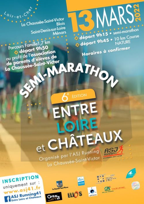 Situé dans le cadre naturel classé au patrimoine mondial de l’UNESCO, le semi-marathon Entre Loire et Châteaux vous mènera vers le parc des Mées, puis Saint Denis sur Loire, Ménars et son célèbre château de la Pompadour, Cour sur Loire pittoresque village pour revenir enfin vers l’arrivée en longeant les bords de Loire. Vous mettrez vos pas sur les traces du célèbre parcours de la Loire à vélo pour une arrivée au complexe sportif où diverses animations vous attendront.