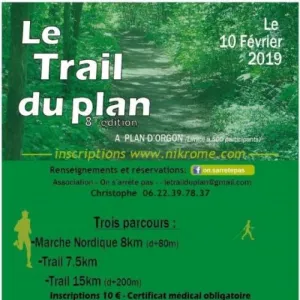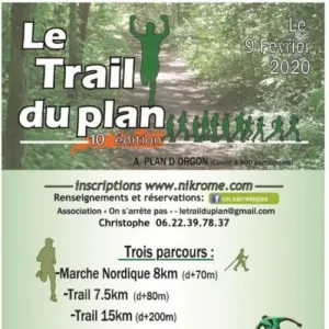 Le Trail du Plan à Plan d’Orgon (13). Organisé par l’Association »On s’arrête pas », le Trail du Plan propose une marche nordique de 8 kilomètres avec un dénivelé positif de 80 mètres.
