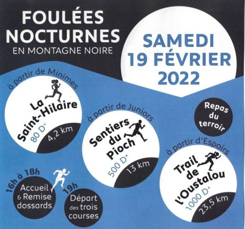 Réaliser une course à pied nocturne dans le superbe cadre qu'offre la Montagne Noire, au départ et à l'arrivée d'hameaux de la commune de Labruguière et tout cela dans une ambiance conviviale, amicale, accessible à tous, voilà la principale motivation de notre comité d'organisation. Offrir en plus de cela des ravitaillements classiques, complétés de produits régionaux et la possibilité de déguster un repas du terroir d'après course entre amis, parait essentiel à la clotûre de cette soirée.