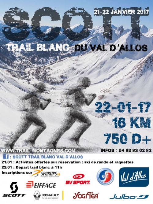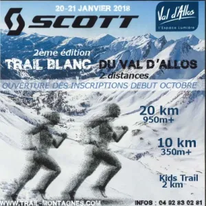Le Scott Trail blanc du Val d'Allos vous fera décourvrir le Val d'Allos, aux portes du Parc National du Mercantour. Il s'agit une course en montagne en milieu nordique qui vous offrira des paysages splendides. L'office municipal de tourisme fort de son expérience et de son parrain Guillaume LENORMAND vous propose un tracé naturel de 15 km* en forme de boucle traversant les paysages authentiques du Val d'Allos, vallon du bouchier et de la Collette, plateau de la ferme des bois et traversée du Chadoulin.