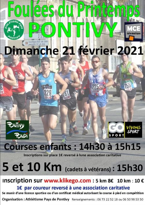 Foulées du Printemps de Pontivy. Evénenement famillial dans la ville Napoléonienne avec les courses enfants autour de la fête foraine à 14h30 et lde cadets à masters à 15h30 dans la nouvelle et l'ancienne ville de PONTIVY.