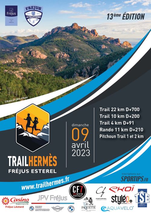 Trail Hermes Fréjus Estérel avec 3 courses : les parcours 22 et 35 km pour les traileurs confirmés, le parcours 10 km pour tous ceux qui veulent quitter un peu le macadam des courses sur route pour goûter au plaisir de la course en pleine nature. Les 3 circuits sont tracés au cœur du massif de l'Estérel. Une randonnée est aussi au programme, c'est l'occasion de venir découvrir le fameux Mont Vinaigre. Tout est organisé pour vous permettre de passer un moment magique.