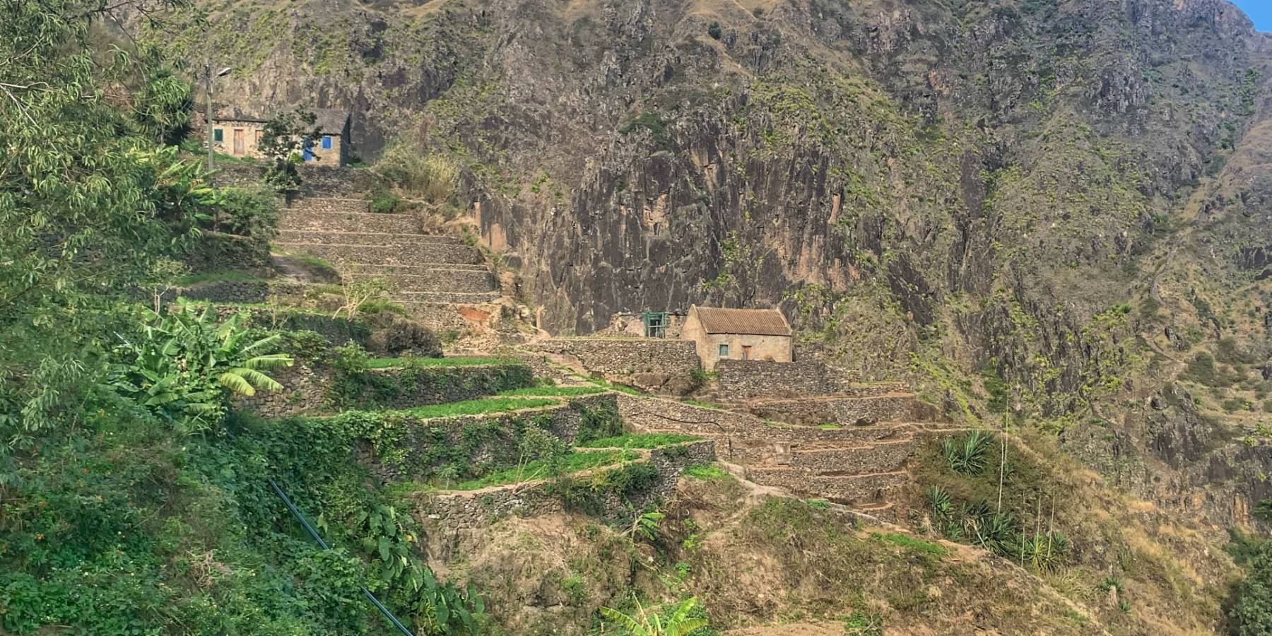 En quelque sorte, la traversée de l'île de San Antao d'ouest en est. Vous traverserez 3 types de paysages pendant votre course : des paysages arides, lunaires puis vous aurez le sentiment d'être à La Réunion avec des sentiers pentus, escarpés, isolés du monde avant de terminer par des paysages dignes de la Toscane et ses routes pavés brodées d'ifs pointant vers le ciel. Vous ne manquerez pas non plus de longer des plantations de café et de découvrir d'ilmmenses palmiers qui se découpent sur le ciel bleu.