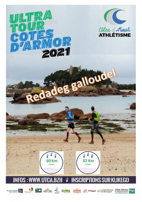 Le Redadeg galloudel UTCA (course virtuelle UTCA) voit le jour suite à l'annulation de l'Ultra Tour des Côtes d'Armor. Nous voulions malgré tout que les coureurs gardent le fil et se donne quelques défis. Deux options s'offrent à vous en vous inscrivant sur le 32 km ou le 60 km. La Redadeg galloudel UTCA se déroulera entre le 14/02/2021 et le 14/03/2021 sur le parcours que vous voulez, du moment que vous respectez la distance imposée de 32 km ou 60 km, plus si vous voulez mais pas moins. Les deux courses sont ouvertes à tous, hommes et femmes, licenciés ou non à partir de 18 ans. A l'issue de la course, chaque participant devra renseigner son temps avec un justificatif ( photo du cadran de sa montre ou autre) et ne pas utiliser de moyen de locomotion quelconque, en marchant ou en courant mais pas en vélo, trottinette, voiture ou autres...