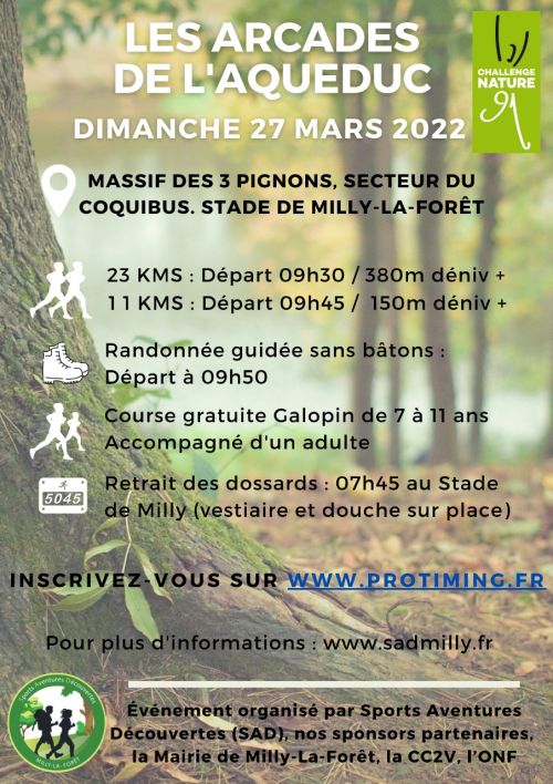 Les Arcades de l'Aqueduc. En forêt de Fontainebleau, dans le massif du Coquibus. Départ et arrivée au stade de Milly-la-Forêt.