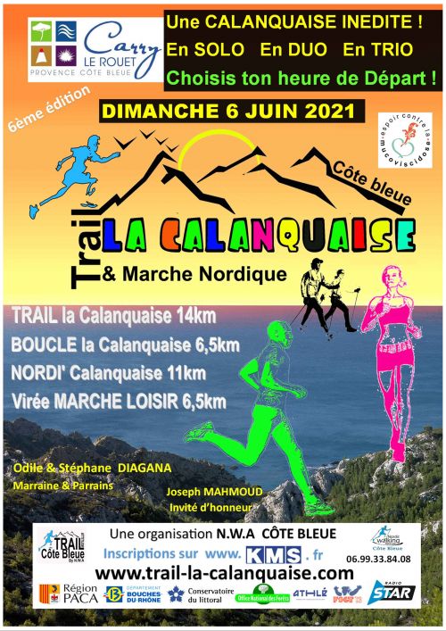Toute l'équipe du NORDIC WALKING ATTITUDE CÔTE BLEUE est heureuse de vous proposer LA CALANQUAISE 6ème édition, un évènement convivial et à la portée de tous. Une manifestation sportive avec le soutient et la collaboration de la mairie de CARRY LE ROUET, Parrainée par Odile & Stéphane DIAGANA, avec Joseph MAHMOUD, notre invité d'honneur et animée par Jean Pierre BUIX.