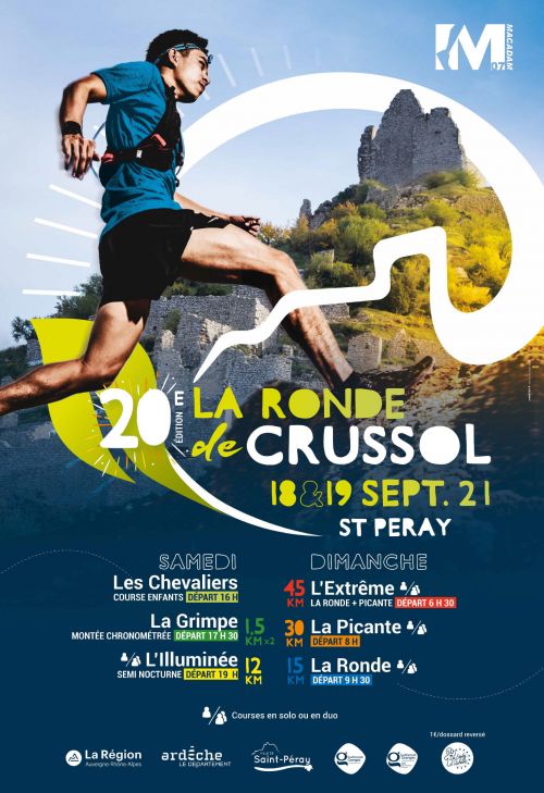 Course phare de la journée, l'itinéraire longe le Mialan avant de gravir la montagne de Crussol, suit les crêtes jusqu'au château de Meyret et enfin redescend sur SaintPéray. Catégories autorisées CA->V5.