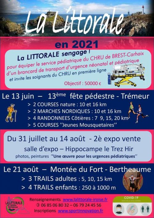 Le programme de cette 13ème fête pédestre La Littorale prévue à Plougonvelin, dans le Finistère (29), propose des marches nordiques et des randonnées côtières. 2 courses de 10 et 16 km, 2 Marches Nordiques de 10 et 16 km, 4 Rando 9-15 et 20 km et 7 km (Rando familiale), 5 courses enfants