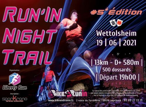 5ème édition de la Run'In Night Trail, course de Nuit au départ de Wettolsheim. Parcours avec passage dans le chateau du Hohlandsbourg.